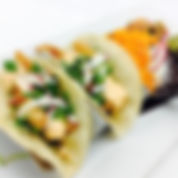 Two soft tacos, served with yellow rice black beans, guacamole, pico de gallo and sour cream on the side